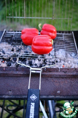 На раскаленный угли поставить решетку-гриль Forester, выложить перцы и запечь до готовности, периодически переворачивая.