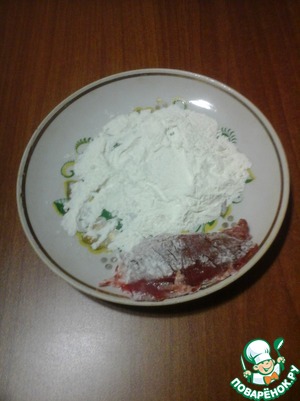 Чтобы мука не свалялась на мясе, нужно устроить "конвейер": кусочек в муку и сразу его на сковородку с разогретым маслом.
