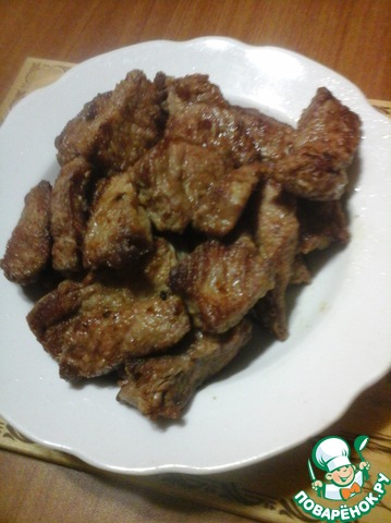 Обжаривать по одной минуте с обеих сторон, обжаренное мясо убрать на тарелку.