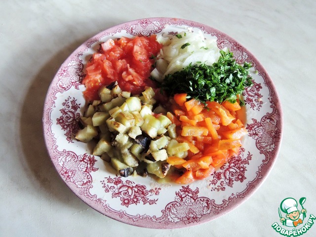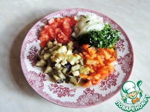 Порезать овощи не слишком мелко. Покрошить лук и зелень.