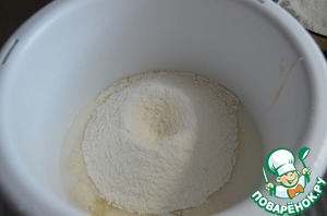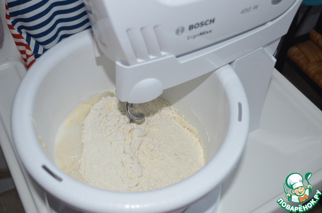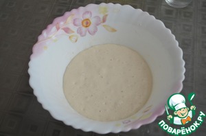 Итак, добавим в опару 1 ч. л. соли, 50 гр молока, 1 белок, 15 гр сахара и 150 гр муки -