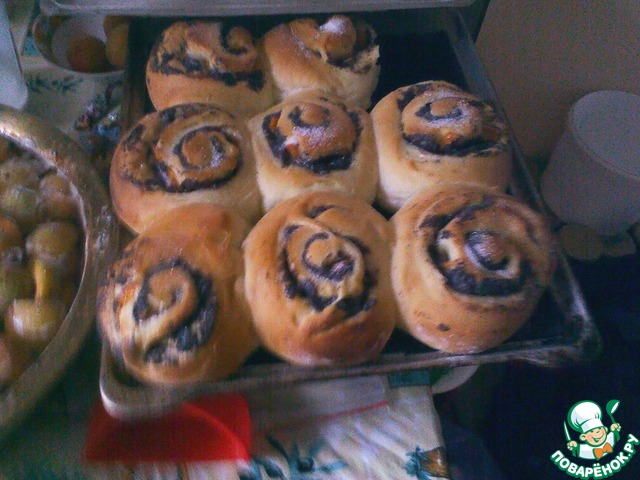 [+5]Немного изменила технологию и количество молока и муки. К закваске на пике активности добавила 215 г. молока, 285 г.муки и 15 г. сахарного песка. Опара замечательно подошла за 2,5 часа ( у меня очень сильная закваска). Затем добавила 1 яйцо,1 ч.л. соли, 115 г. сахарного песка,280 г. муки, все перемешала и оставила на 30 минут для аутолиза. Хорошо вымесила тесто, добавив 80 г. сливочного масла через 15 минут от начала замеса. Оставила тесто на 1 час в миске, обтянутой пищевой пленкой. Получилось бесподобное, очень удобное в работе тесто. Сформовала булочки, оставила на расстойку на 4 часа, испекла(ароматы стояли божественные!