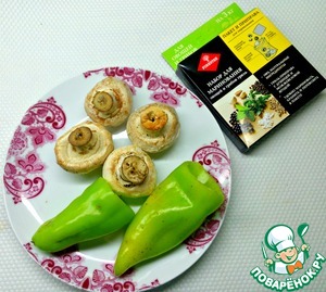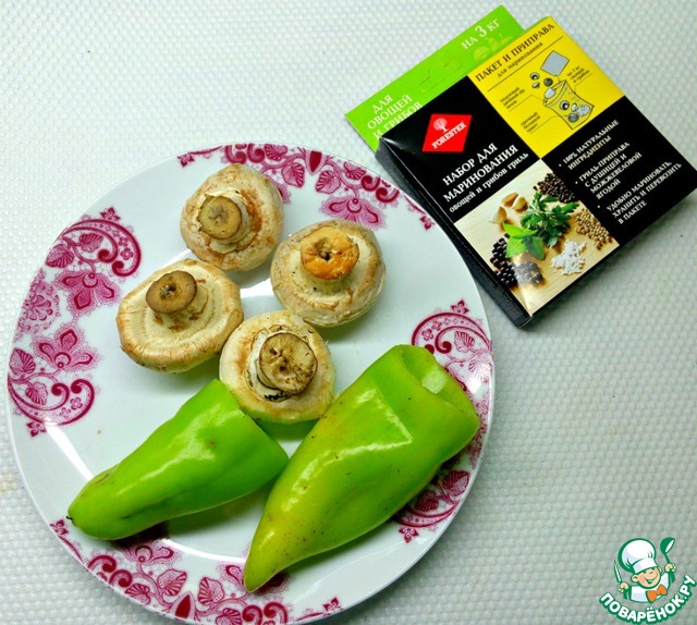 Шампиньоны и перец помыть и очистить.