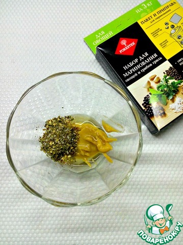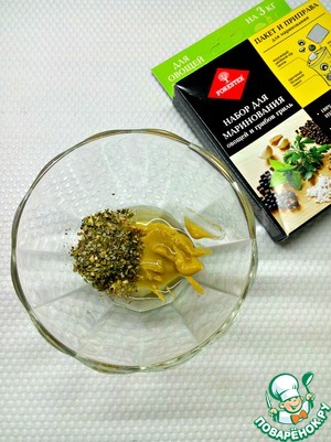 В отдельной пиале смешать горчицу, растительное масло и специи от "Forester"