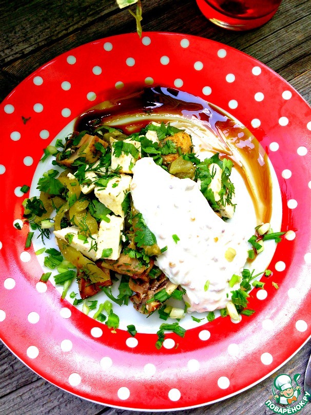 Для заправки смешать сметану и зерновую горчицу.
