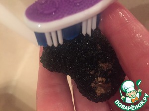 Свежий трюфель осторожно почистить щеткой под проточной водой от земли и грязи.