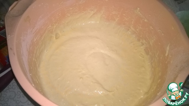 Взбить еще раз, чтобы разбить комочки. Тесто должно быть как густая сметана, если жидкое-добавьте немного муки, если густовато-добавьте немного майонеза и взбейте еще раз.