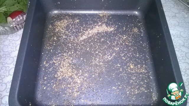 Промажьте форму для пирога растительным маслом и присыпьте панировочными сухарями.