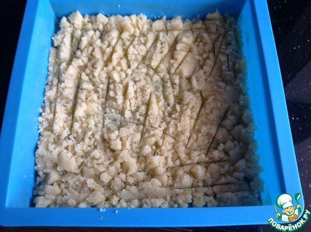Выложите тесто в форму и разровняйте. Выпекайте 15 минут. Достаньте и остудите.
