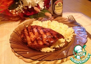 Такую курицу хорошо готовить на открытом огне на решётке, но в дождливую погоду вполне можно приготовить на сковороде - гриль, что я и сделала. Я использовала куриное филе. Оно получилось мягким и сочным. Вкусно и в горячем, и в холодном виде. В холодном мы ели на бутерброды. Вы можете предложить такое блюдо на обед или ужин, хорошо подать и к праздничному столу, изменив гарнир, выручит оно и в случае прихода друзей.