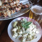Выложить салат на блюдо и посыпать по желанию мелко нарезанными листиками мяты.