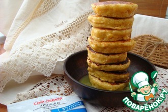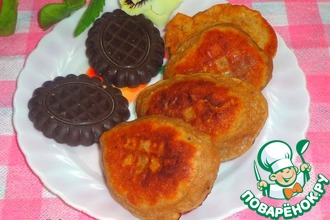 Выкладываем массу мокрой ложкой на разогретую сковороду, смазанную маслом, формуя оладьи, и выпекаем под крышкой с двух сторон на небольшом огне.