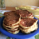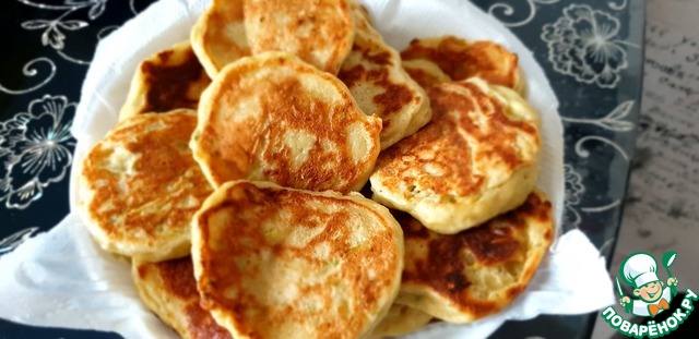 И еще, может совсем не в тему, не кидайте в меня тапками, но когда кабачки закончились, а оладушек хотелось, сделали по этому рецепту с яблоками, натертыми на крупной терке, плюс чуть больше подсластителя. И оказалось тоже очень вкусно