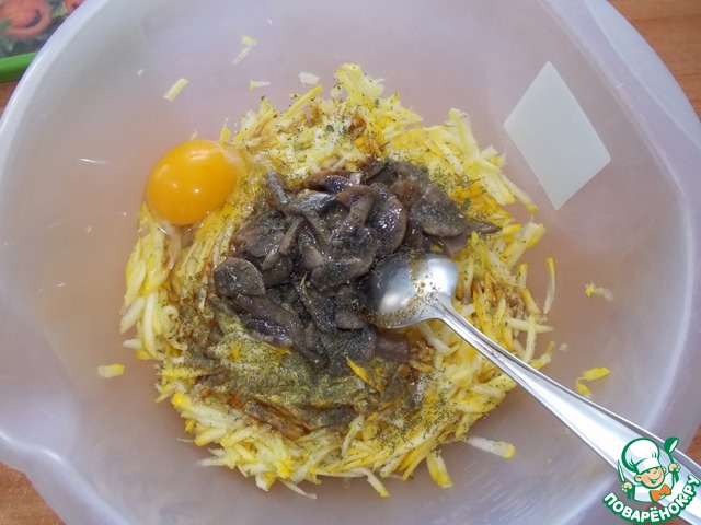 Рецепт "Оладьи из кабачков с грибами":