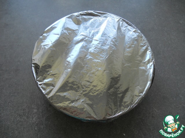 Накрываем форму фольгой и выпекаем в духовке, предварительно разогретой до 180 градусов, в течение 15 минут