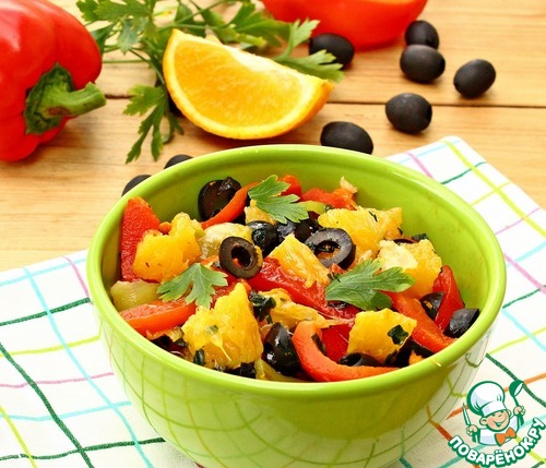 Как хорошо, что на выходных можно выбраться за город, отдохнуть на свежем воздухе и, конечно же, приготовить что-нибудь вкусное на костре или на мангале. Предлагаю приготовить закуску из печеных перцев с маслинами и апельсином. Перцы запечем непосредственно на природе, а остальные составляющие приготовим дома.