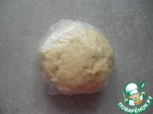 Замешиваем тесто. Скатываем его в шар, заворачиваем в пленку и отправляем в холодильник на 1 час.