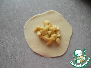 Каждую раскатываем в кружок, в центр выкладываем начинку