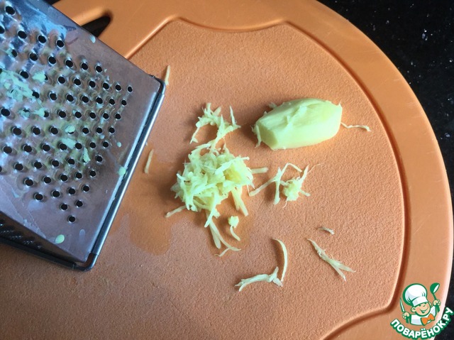Имбирь натрите на мелкой тёрке.