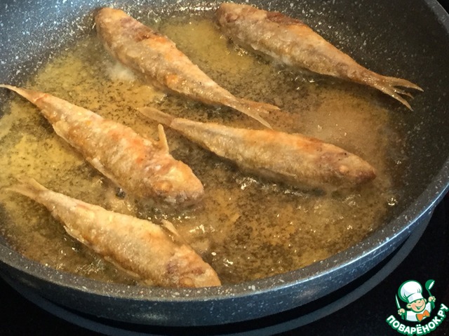 На раскалённую сковородку налейте растительное масло и пожарьте рыбку с двух сторон до золотистого цвета.