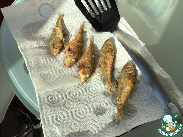 Выкладывайте рыбку на бумажное полотенце, чтобы ушёл лишний жир.