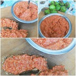 Добавляем печеный перец, панировочные сухари, чеснок, зиру, паприку, бальзамик, лимонный сок и оливковое масло.