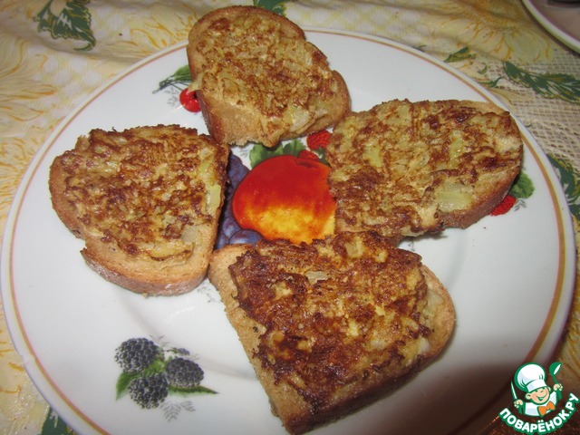 [+5]Так нееет. Охота - пуще неволи, так и пришлось на ужин готовить эти хрустящие тосты с золотой корочкой, ммм, с яично-луковой шапочкой. И они улетели, заметить не успела