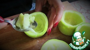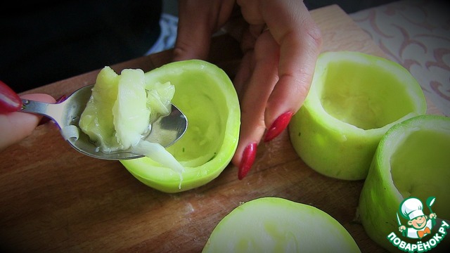 • Ложкой вынуть сердцевину, оставляя донышко.