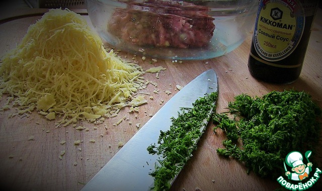• Натереть сыр и порубить петрушку.
