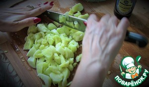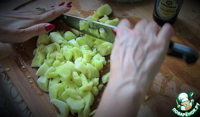 • Мякоть мелко порубить и также отправить в фарш.