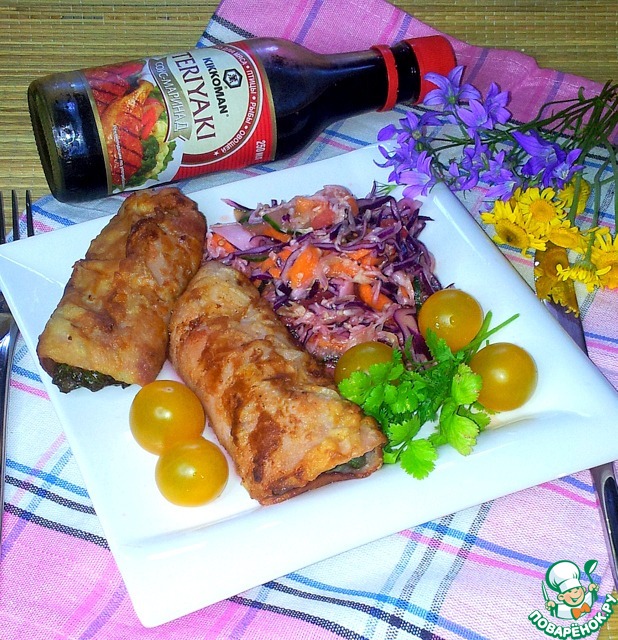 Рулетики скрепила зубочисткой, обмакнула в соус