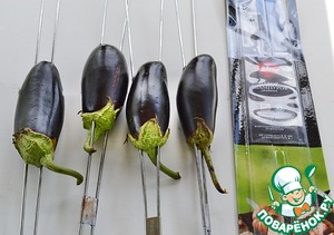 Для запекания возьмем ровные не очень толстые баклажаны. Двойные шампуры Forester идеально подходят для запекания баклажан на гриле.