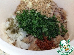 Тем временем, орехи пропустить через мелкое решето мясорубки или воспользоваться блендером.