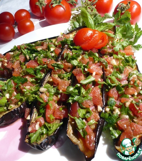 Ингредиенты для «Баклажаны на гриле с помидорами»: