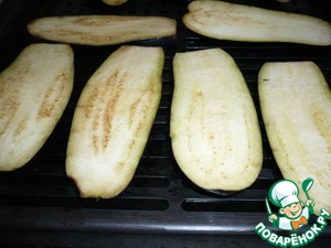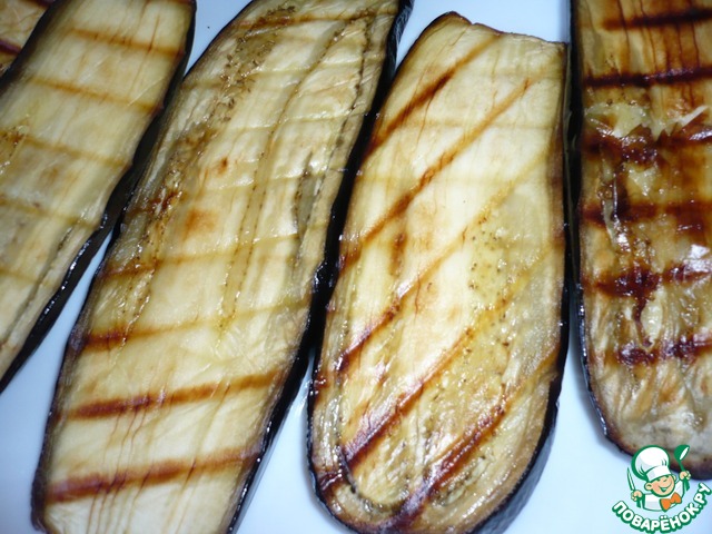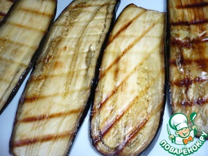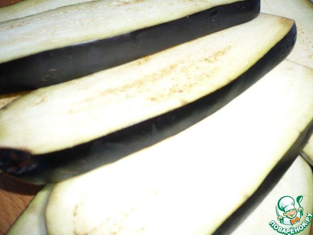 Баклажаны нарежьте вдоль на ломтики толщиной 0,5-1 см., смажьте небольшим количеством растительного масла.