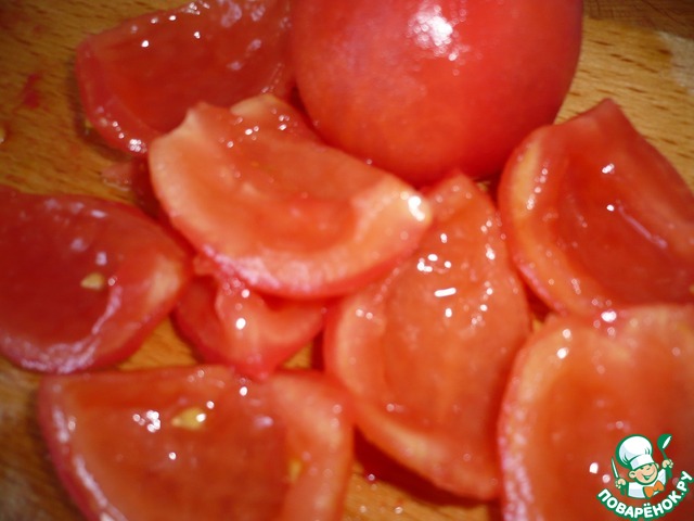 Приготовим соус из помидор. Для этого: помидоры бланшируем, а затем очистим от шкурки и семян, нарежьте некрупными кубиками.