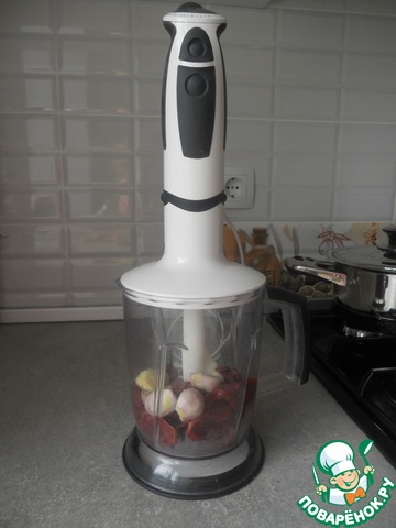 Печень и лук измельчить в блендере или пропустить через мясорубку