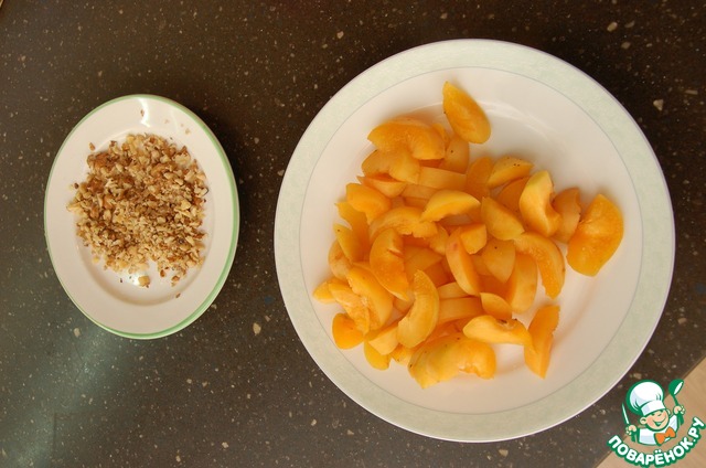 Для соуса удалите косточки из абрикосов, крупно нарежьте. Порубите грецкий орех.