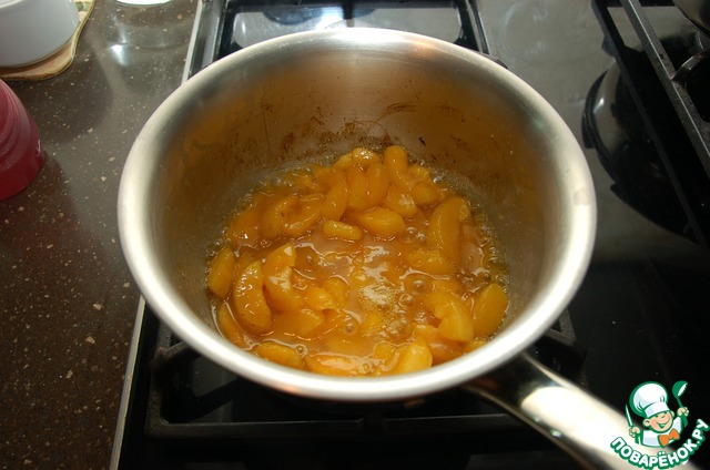 С кастрюльке растопите сливочное масло и обжарьте абрикосы секунд 30, постоянно помешивая.