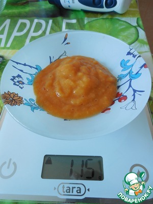 Из абрикосов при помощи блендера сделать пюре. У меня из 3-х абрикосов получилось 115 гр пюре.