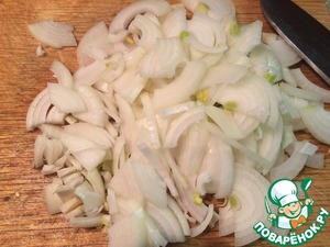 Очистить и нарезать лук полу или четверть кольцами.