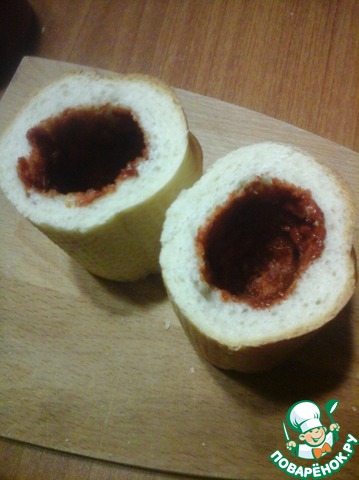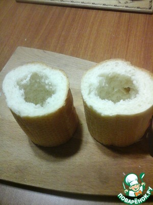 Вынуть чайной ложечкой часть мякиша, чтобы получился "стаканчик" с донышком толщиной 1,5-2 см.