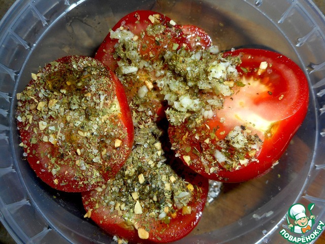 Специи от Forester, которые я использовала в том рецепте прекрасно подходят к помидорам. Придавая им прекрасный вкус и аромат.