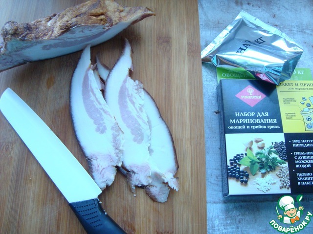 - Сало (копчёное, можно бекон в нарезке) — 4 ломт.