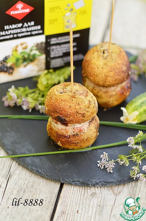 Предлагаю приготовить ароматные, сочные грибы, замаринованные в специях Forester и фаршированные мясом.