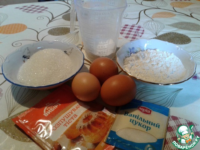 Продукты, которые нам понадобятся для приготовления бисквита.
