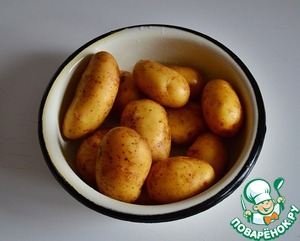 Картофель, желательно молодой, тщательно вымыть щеткой. Если картофель старый, нужно очистить от кожуры.