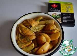 Разрезать картофель на четвертинки, приправить специями для грибов и овощей Forester