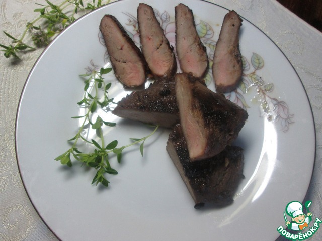 Очень вкусное и изысканное блюдо. Мясо получается нежным и сочным, правильной прожарки, его не стыдно будет подать на праздничный стол.