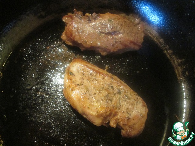 Растительное масло разогреть на сковороде и обжарить грудку с обеих сторон до золотистого цвета.